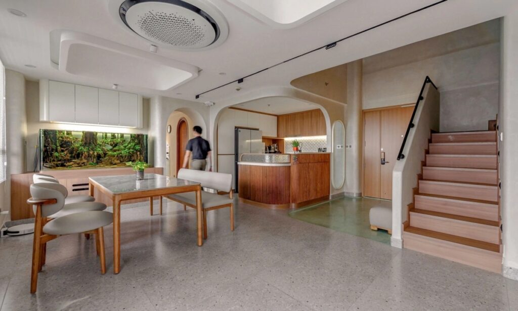 Căn hộ có diện tích 97,34 m2, nằm trong khu chung cư tại Hưng Yên, được hoàn thiện với ngân sách 320 triệu đồng. KTS lựa chọn thiết kế theo phong cách farmhouse kết hợp Wabi-sabi, ưu tiên sự mộc mạc và gần gũi. Tổng thể căn hộ cân bằng giữa tính thẩm mỹ và […]