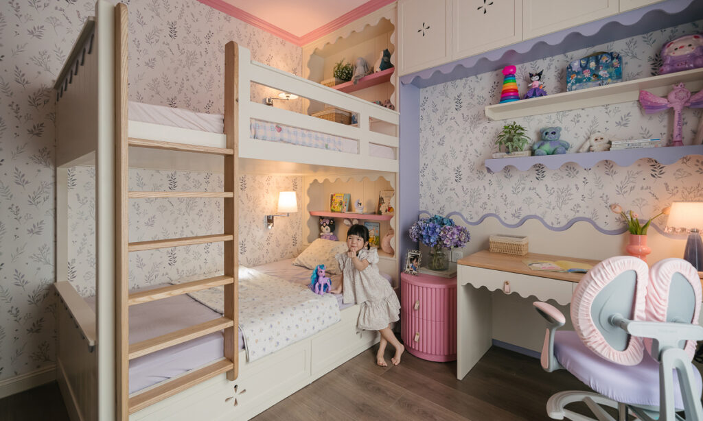 Phòng 12 m2 phối màu tím hồng theo sở thích của bé gái 4 tuổi