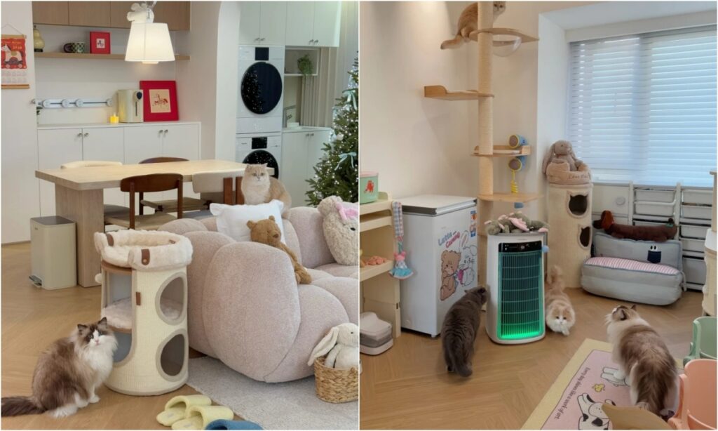 Cặp đôi Gen Z tự thiết kế căn hộ 118 m2 có phòng riêng cho mèo