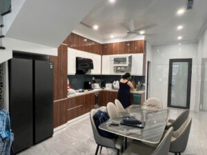 Kết cấu: 1 trệt, 2 lầu, gồm 4 phòng ngủ và 3 nhà vệ sinh.