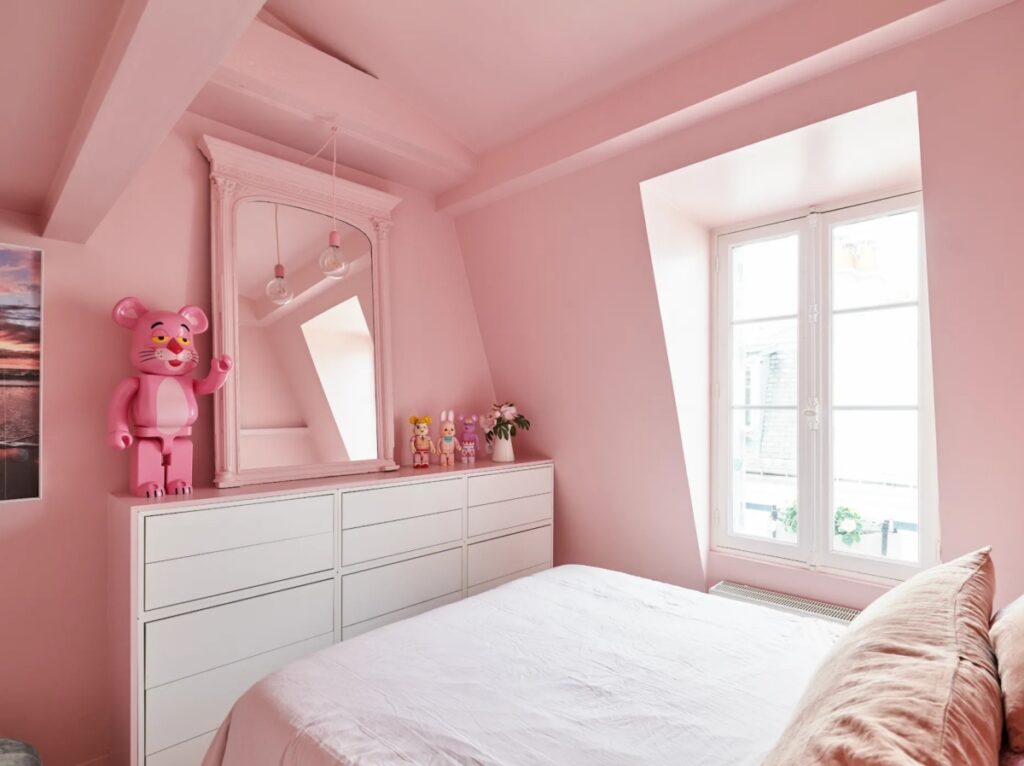 Những món đồ trang trí cũng có tông hồng, tạo cảm giác liền mạch trong không gian nghỉ ngơi.