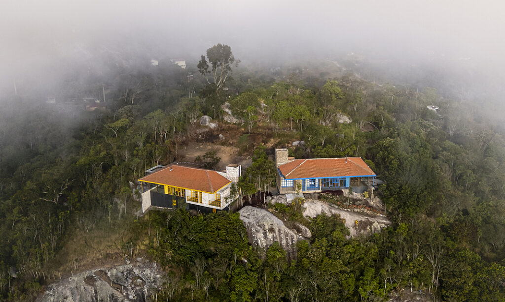 Khi đội ngũ kiến trúc sư lần đầu đặt chân đến mảnh đất ở Serra Negra (Brazil), nơi này gần như bị bỏ quên với cỏ dại mọc cao quá đầu. Sau vài tuần dọn dẹp mà không chặt cây, họ phát hiện ra một phiến đá lớn nằm trên mép vực, nhìn thẳng ra thung lũng. Vị trí này ngay lập tức được KTS chọn làm điểm nhấn chính của dự án.